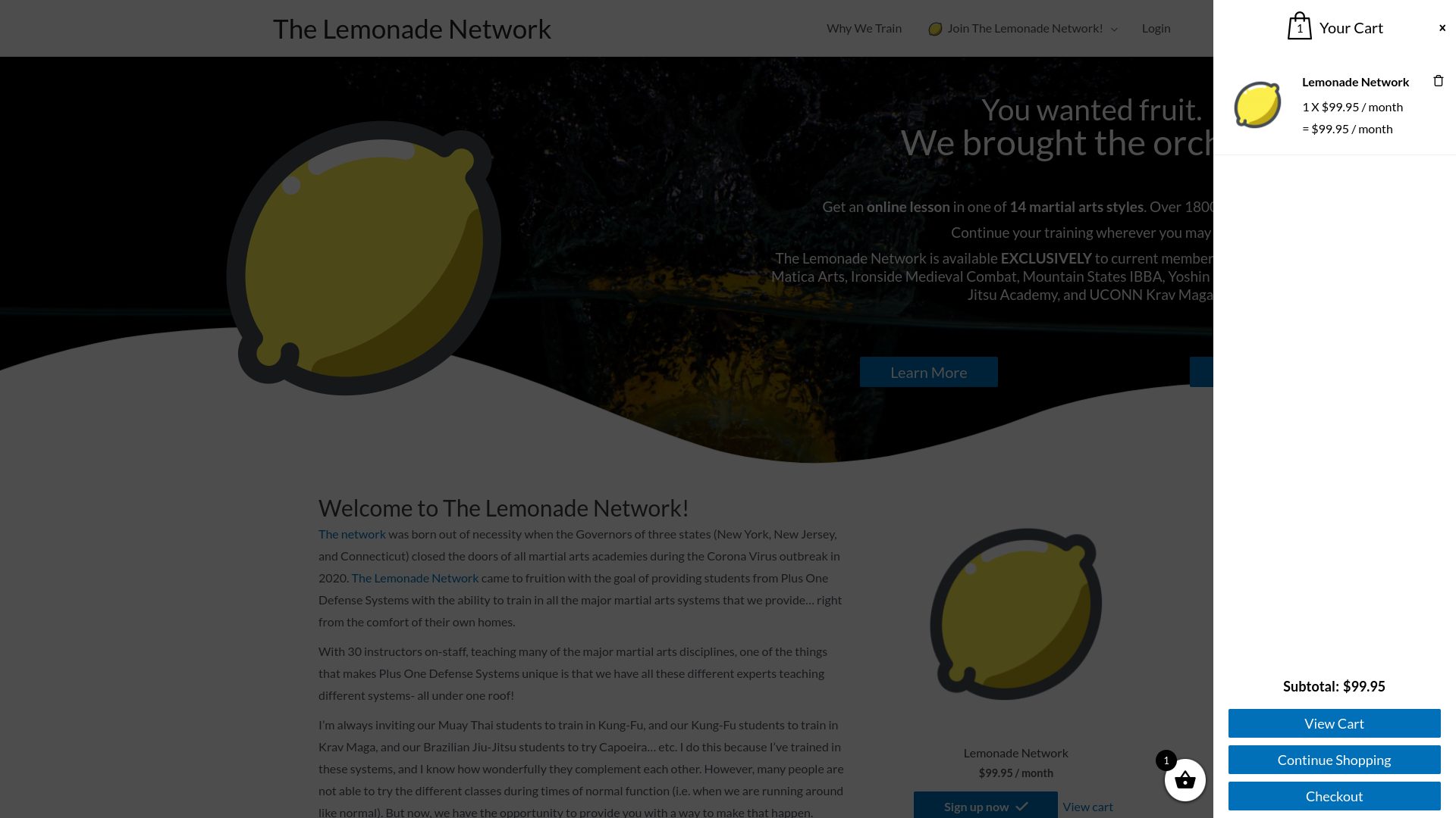 The lemonade network was built in response to the COVID pandemic and the requirement that fitness studios close their doors to the public. Plus One Defense Systems needed an online video learning center with subscription capability built within days to prevent massive membership cancellations.